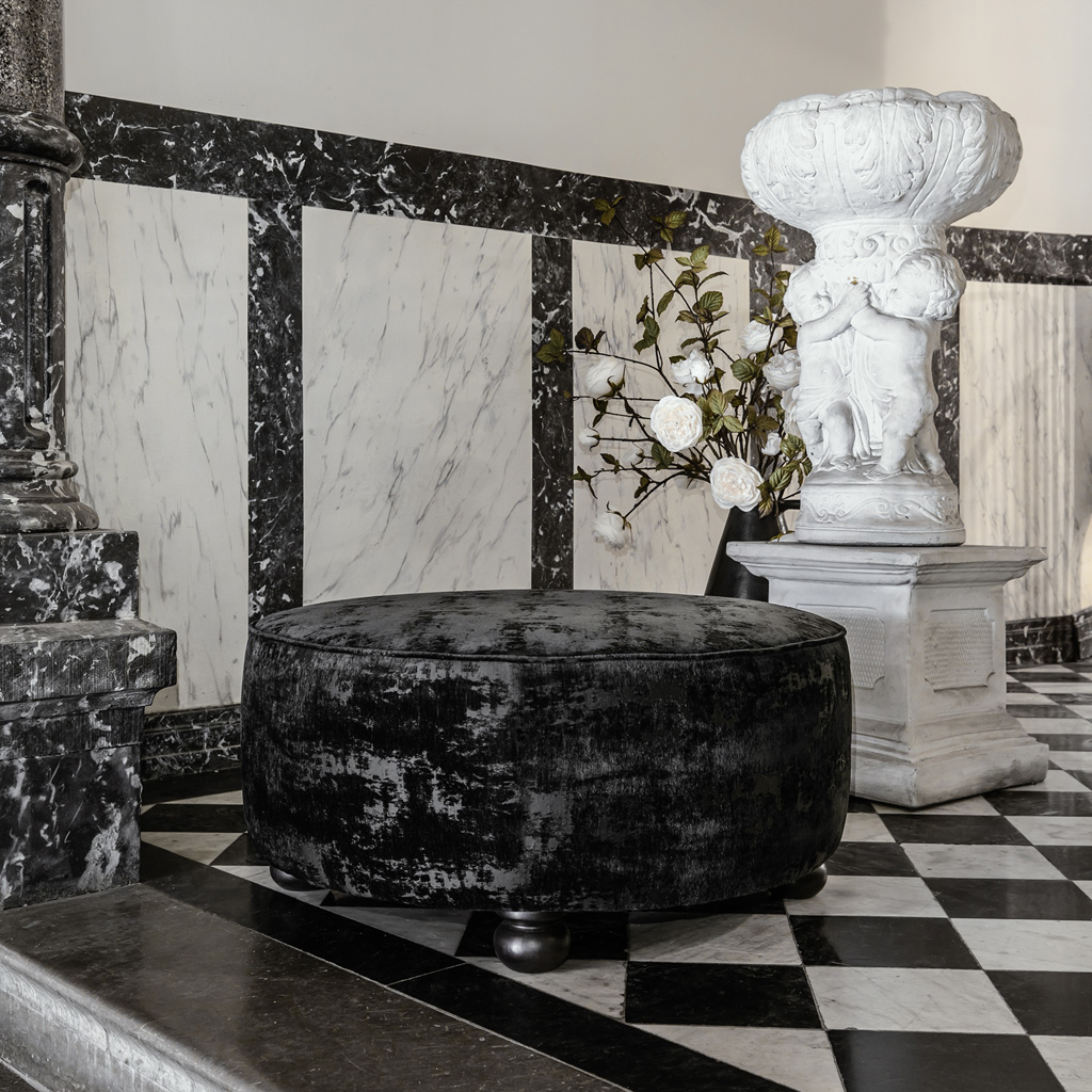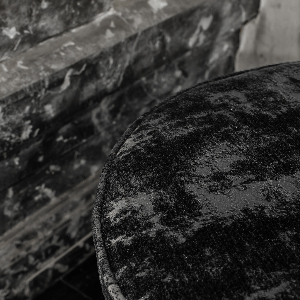 Adele pouf is the perfect addition to your interior. This charming piece, characterized by the beautiful tailoring, all dressed in pure black vintage velvet and round legs in dark lacquered oak, adds a touch of elegance and sophistication to any space. Designed to bring delicate balance to the room, bringing an extra seat whenever needed. And on top of all of all, the most interesting piece of furniture in the room.
